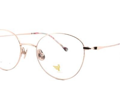 Eyeglasses Model A0507, gold color, metal frame, round shape, unisex, arm length 145mm, bridge size 18mm, lens size 52mm.